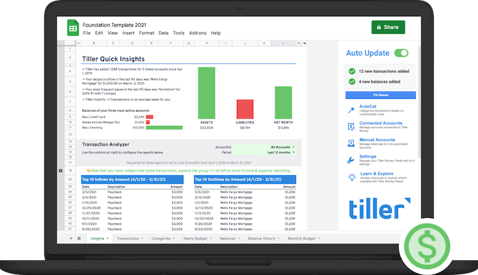 If you’re tired of using financial planning apps in general and just want to see all of your numbers in one place on a spreadsheet, Tiller can make it happen!